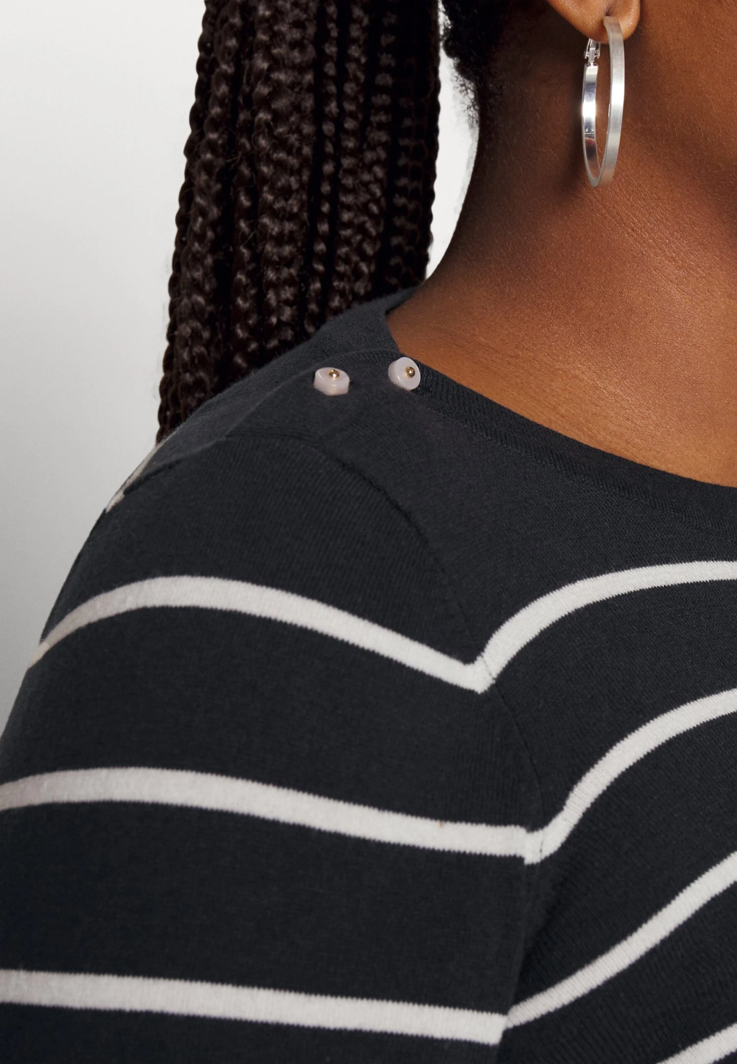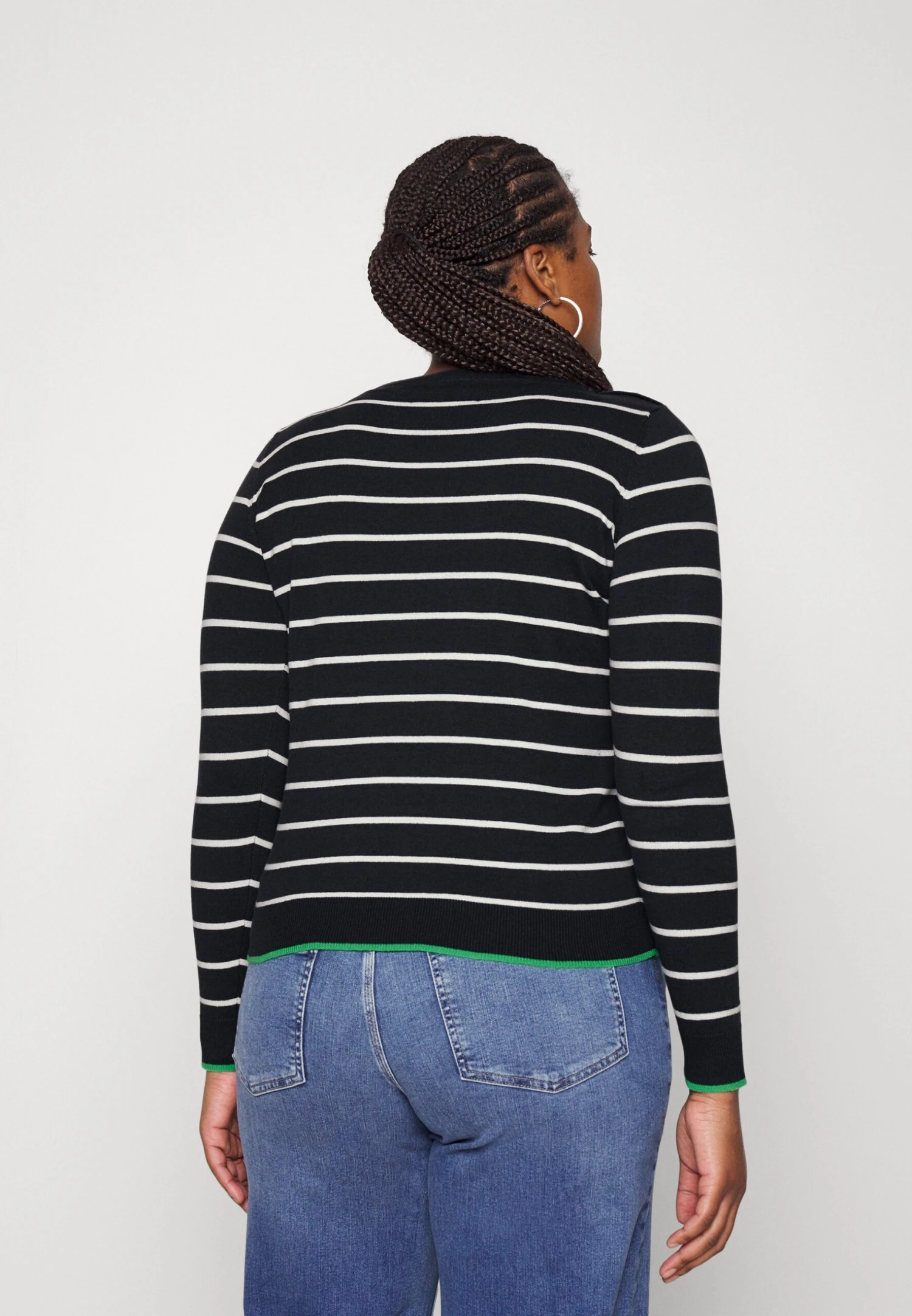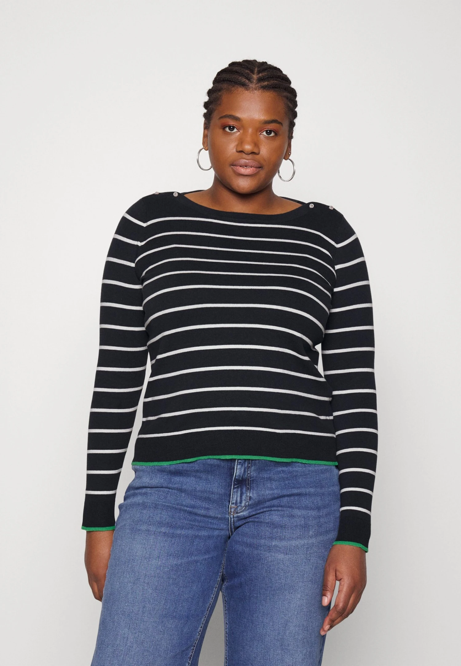 Vero Moda Curve Vmalma Ls Boatneck Button Curve – Jumper – Black/Snow White/Bright Green