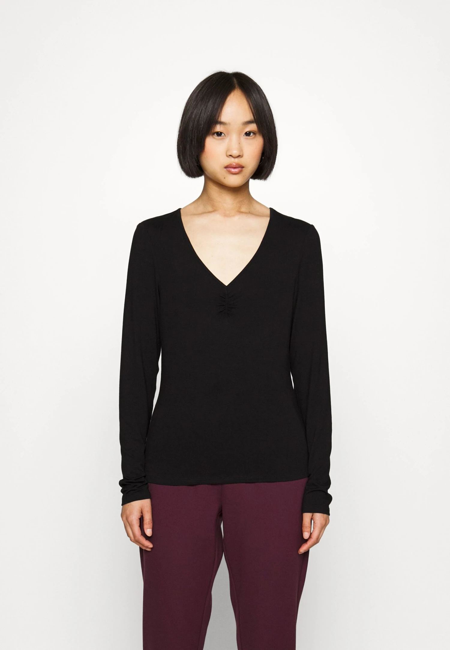 Vero Moda Petite Vmalberte V Neck – Long Sleeved Top – Black