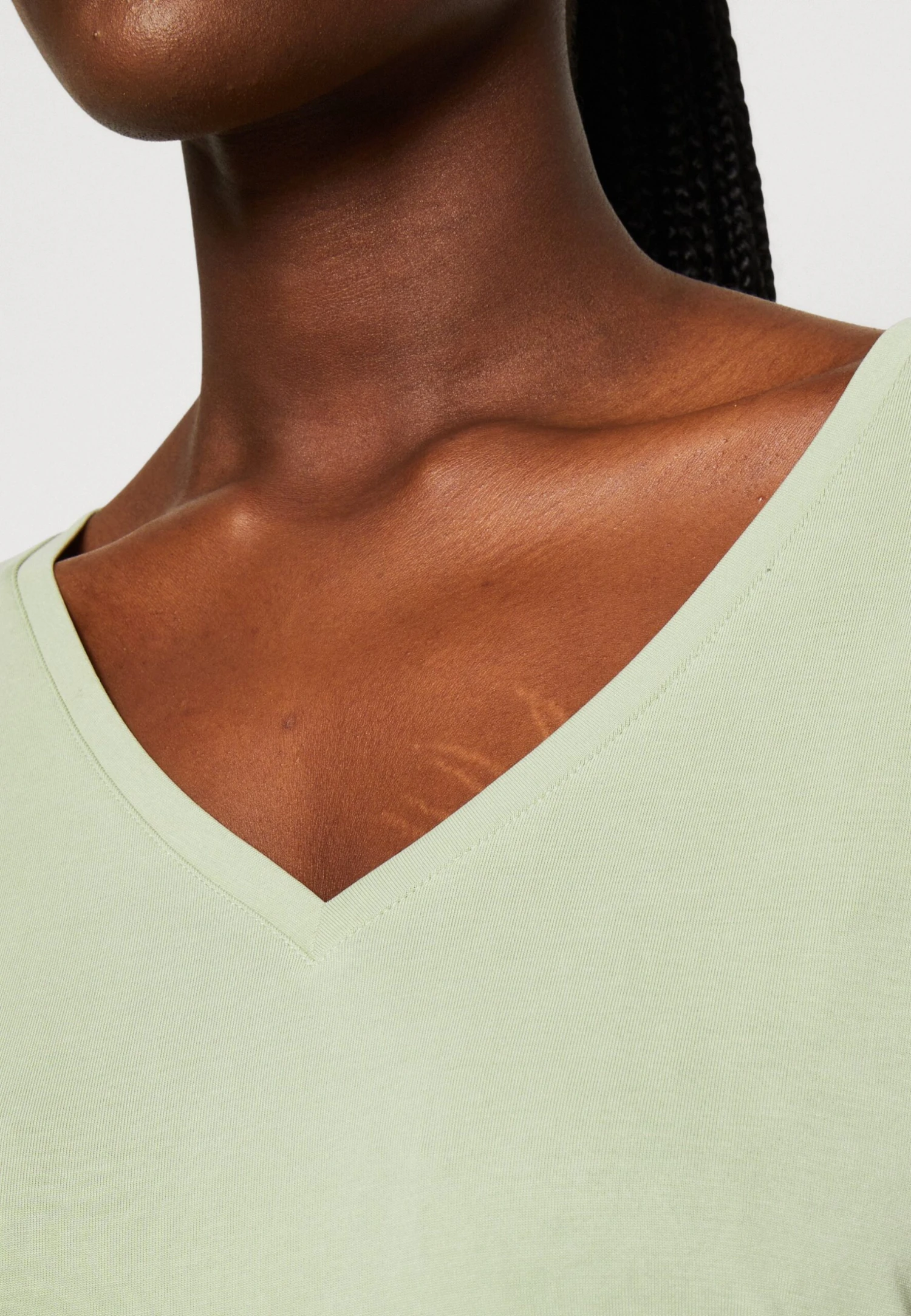 | Neckline | Low-cut v-neck |